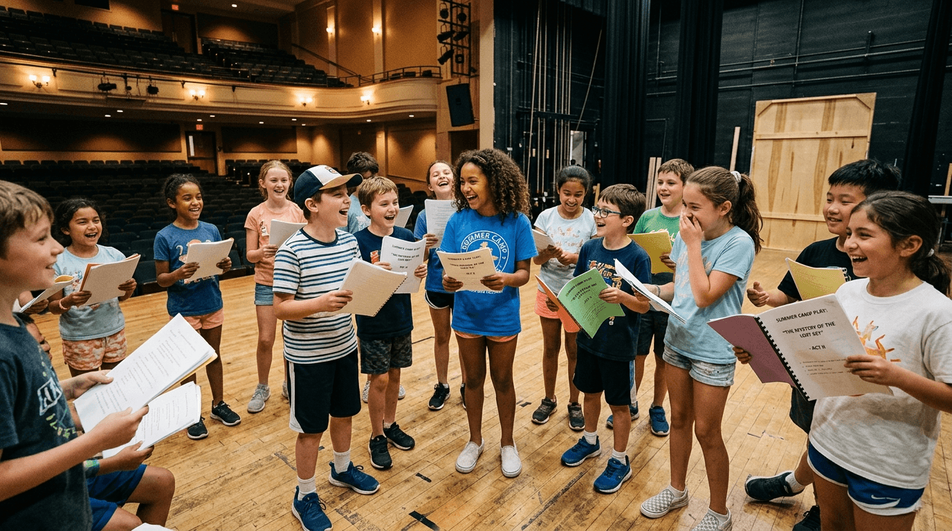 Before camp even begins, you'll audition via video and receive your script weeks in advance — so when you walk in on Monday morning, you're already off-book and ready to create.